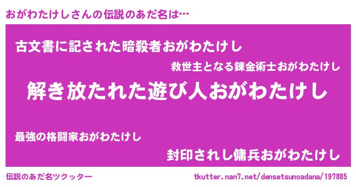 | 意味不明あだ名 | 『とにかく怪しいおがわたけし』 |