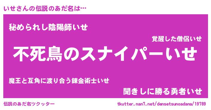 | 胡散臭い通販商品みたいなあだ名 | 『モテモテ間違いなし霊験あらたかなお札…その名も「いせ」』 |