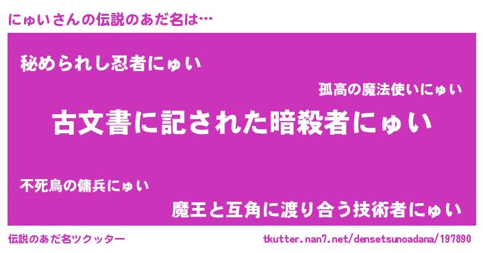 | ヘコむあだ名 | 『にゅい(爆)』『牛乳』『にゅぷりん』 |