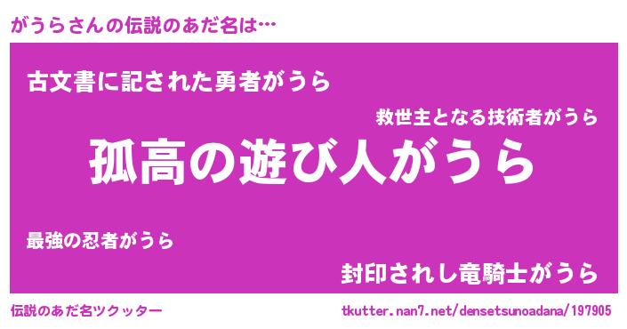 | 意味不明あだ名 | 『とにかく怪しいがうら』『自称がうら』 |