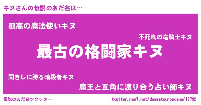 | ヒーロー風カッコイイあだ名 | 『ウルトラキヌマン』『仮面キヌダー』 |