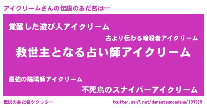 | ヒーロー風カッコイイあだ名 | 『慈愛の使者アイクリーム』 |