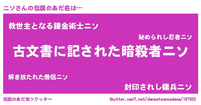 | 意味不明あだ名 | 『永久保存ニソ』『眠気覚ましガムニソ味』 |