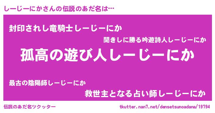 | ヒーロー風カッコイイあだ名 | 『暗黒騎士シー』『スーパーシージーニカ』 |