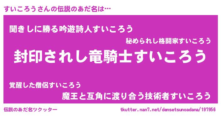 | 男性向けラノベタイトル風あだ名 | 『うちのすいころうが世界を掌握している!』 |