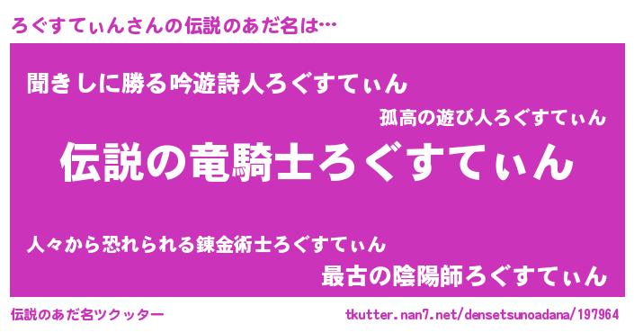 | 意味不明あだ名 | 『自称ろぐすてぃん』 |