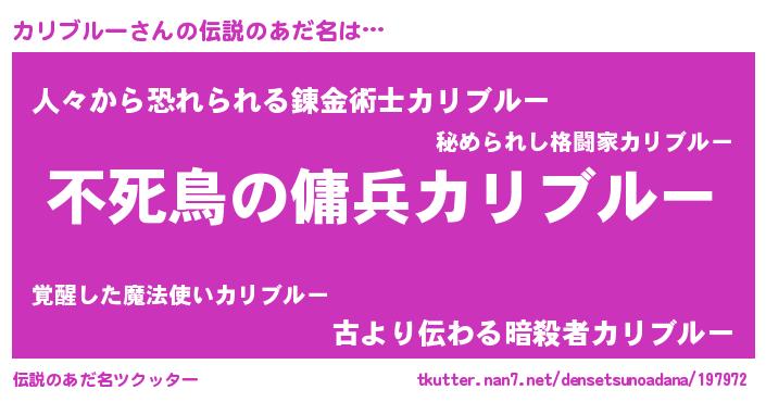 | 男性向けラノベタイトル風あだ名 | 『転生したらカリブルーだった件』 |