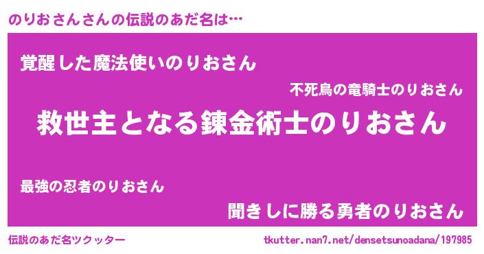 | ヒーロー風カッコイイあだ名 | 『慈愛の使者のりおさん』『黄金騎士ノリ』 |