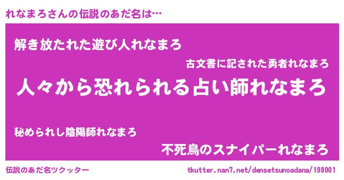 | ヒーロー風カッコイイあだ名 | 『正義の使者れなまろ』『魔戒騎士レナ』 |
