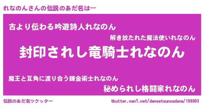 | ヒーロー風カッコイイあだ名 | 『スーパーレナノン』『ネオレナノン』 |