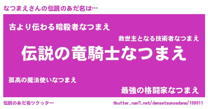 | 意味不明あだ名 | 『住所不定無職なつまえ(1歳)』 |