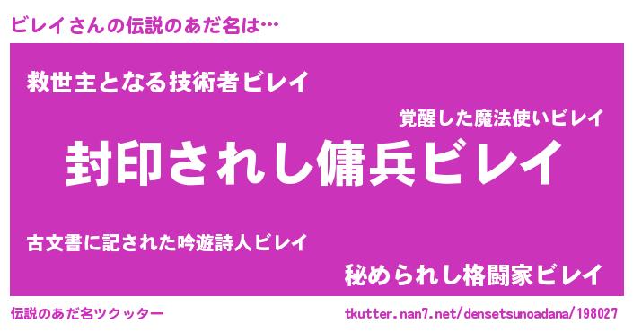 | ヒーロー風カッコイイあだ名 | 『仮面ビレダー』『スーパービレイ』 |