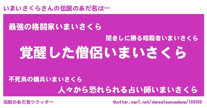 | ポケモン風あだ名 | 『ヒイマイサクラ』『イマイダネ』 |