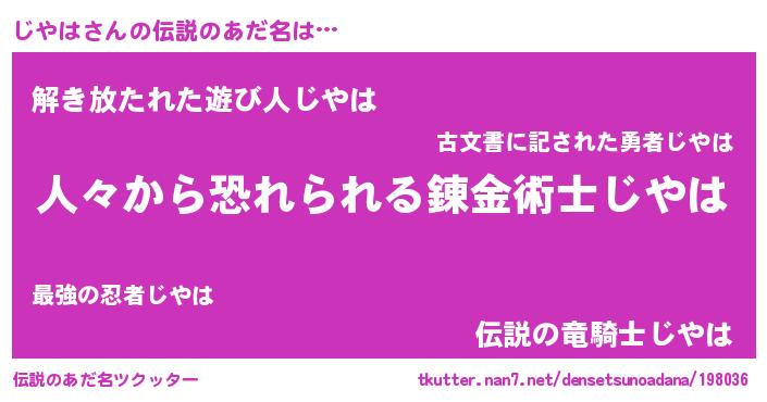 | ヒーロー風カッコイイあだ名 | 『超時空戦士ジヤハ』『愛の使者じやは』 |