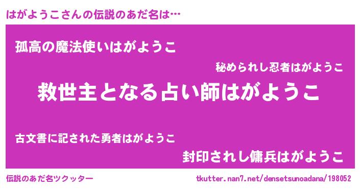 | ヒーロー風カッコイイあだ名 | 『天空の使者はがようこ』『暗黒騎士ハガ』 |