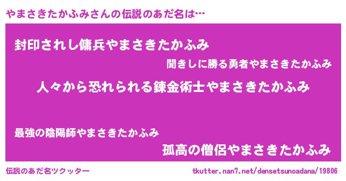 | 意味不明あだ名 | 『眠気覚ましガムやまさきたかふみ味』 |