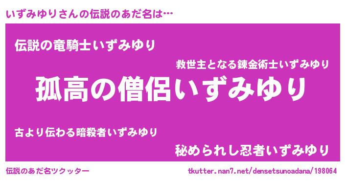 | 女子向けラノベタイトル風あだ名 | 『いずみゆりは平凡を望む』 |