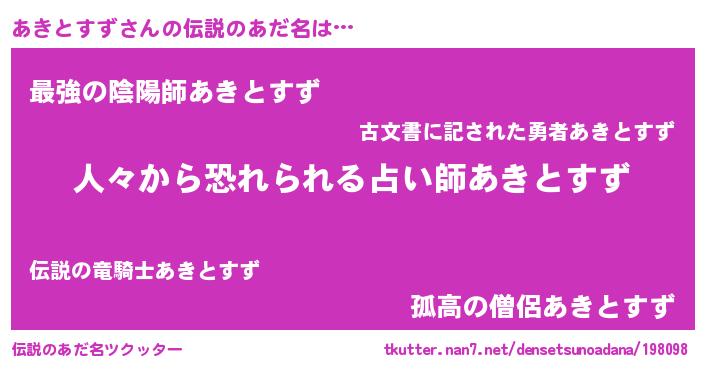 | ポケモン風あだ名 | 『アックウザ』『アキトダネ』 |