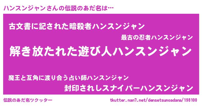 | 胡散臭い通販商品みたいなあだ名 | 『伝統あるペンダント…その名も「ハンスンジャン」』 |