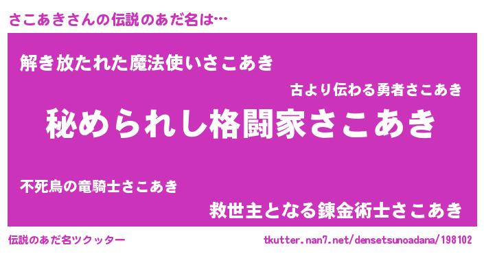 | 男性向けラノベタイトル風あだ名 | 『サコアキスレイヤー』 |