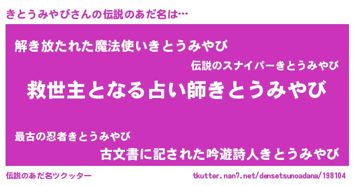 | ヒーロー風カッコイイあだ名 | 『天空の使者きとうみやび』 |