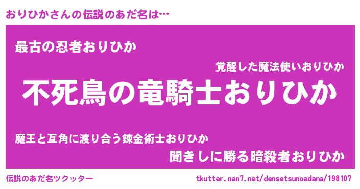 | 男性向けラノベタイトル風あだ名 | 『転生したらおりひかだった件』 |