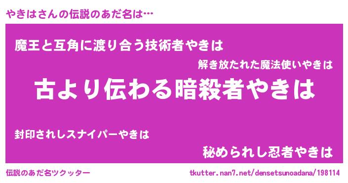 | 胡散臭い通販商品みたいなあだ名 | 『来世でも幸せになれる健康食品…その名も「やきは」』 |