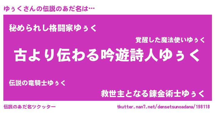 | 男性向けラノベタイトル風あだ名 | 『ゆぅくという概念が存在しない退屈な世界 』 |