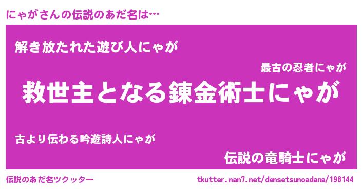 | ヒーロー風カッコイイあだ名 | 『慈愛の使者にゃが』『幻影騎士ニャ』 |