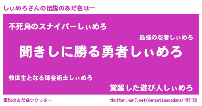 | ヒーロー風カッコイイあだ名 | 『ネオシィメロ』『仮面シィダー』 |