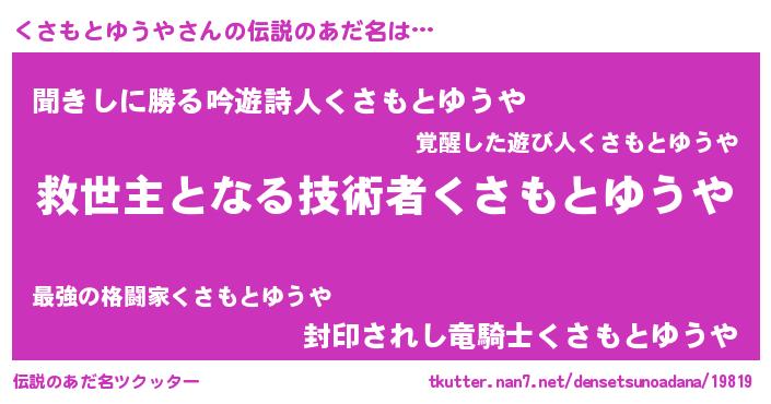 | ヘコむあだ名 | 『くさもとゆうや(笑)』『くさにー』 |