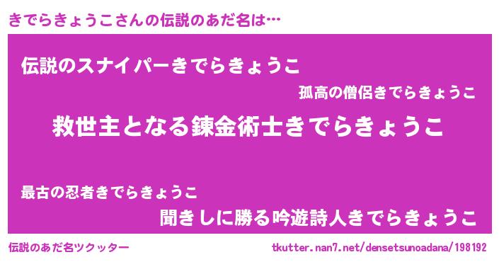 | 胡散臭い通販商品みたいなあだ名 | 『モンドセレクションを受賞した隕石のかけら…その名も「きでらきょうこ」』 |