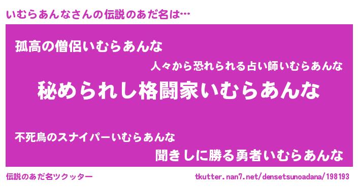 | ファンタジー風あだ名 | 『エターナルイムラアンナー』 |