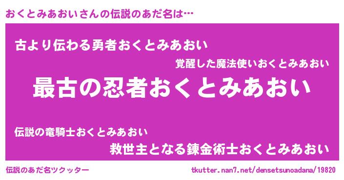 | ヒーロー風カッコイイあだ名 | 『仮面オクダー』『ネオオクトミアオイ』 |