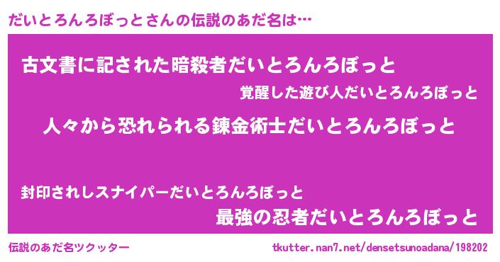 | 意味不明あだ名 | 『住所不定無職だいとろんろぼっと(91歳)』 |