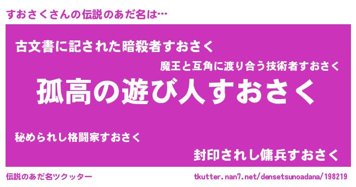 | ヘコむあだ名 | 『すおぷりん』『すおさく(苦笑)』 |