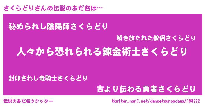 | 意味不明あだ名 | 『自称さくらどり』『永久保存さくらどり』 |