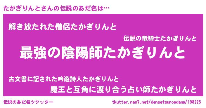 | ファンタジー風あだ名 | 『エターナルタカギリントー』 |