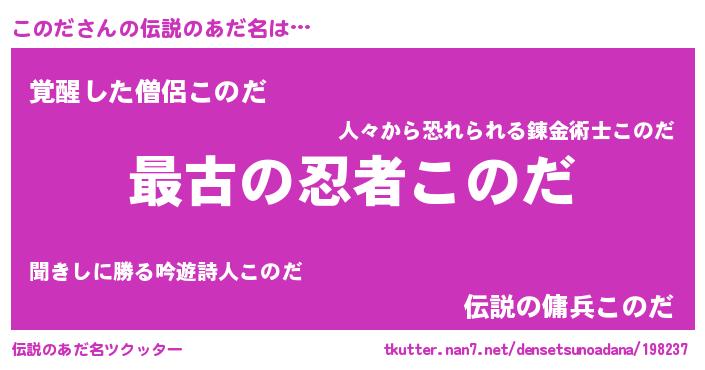| ヒーロー風カッコイイあだ名 | 『仮面コノダー』『ウルトラこのだマン』 |