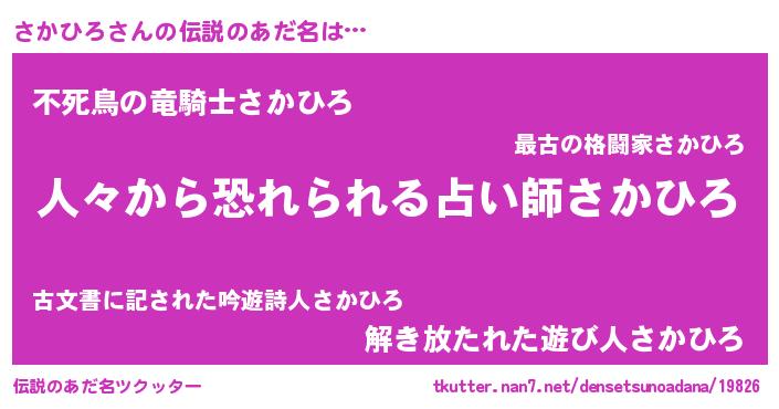| 男性向けラノベタイトル風あだ名 | 『おまえをオタクにしてやるから、俺をさかひろにしてくれ! 』 |