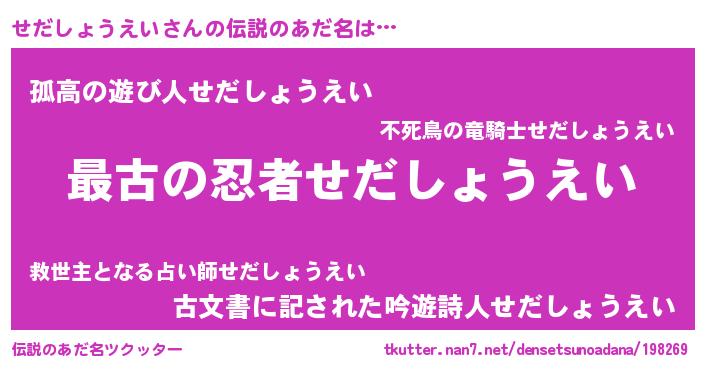 | 意味不明あだ名 | 『せだしょうえいフォーエバー』 |