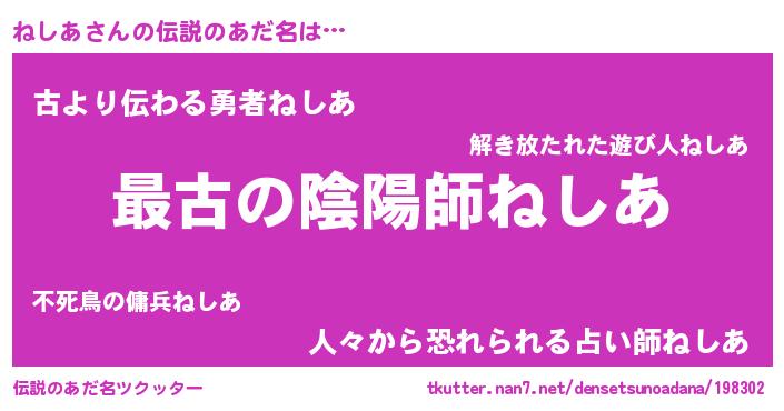 | ヒーロー風カッコイイあだ名 | 『ウルトラねしあマン』『仮面ネシダー』 |