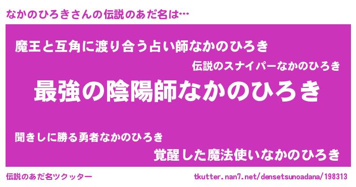 | 男性向けラノベタイトル風あだ名 | 『なかのひろき~年齢イコール彼女いない歴の魔法使い~』 |