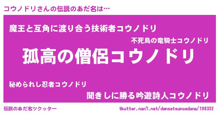 | 意味不明あだ名 | 『とにかく怪しいコウノドリ』 |