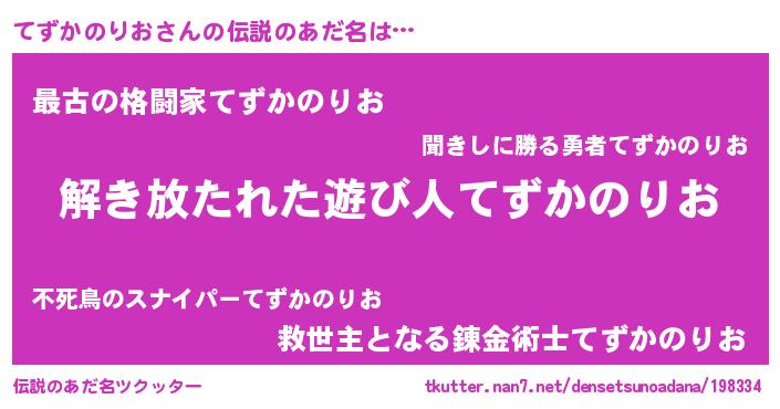 | 女子向けラノベタイトル風あだ名 | 『てずかのりおの卵を拾いまして』 |