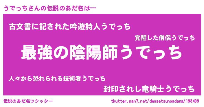 | 女子向けラノベタイトル風あだ名 | 『悪役うでっちに転生したようですが、知った事ではありません』 |