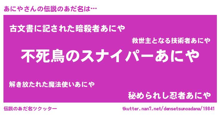 | ヒーロー風カッコイイあだ名 | 『スーパーアニヤ』『ネオアニヤ』 |