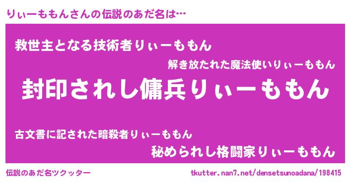 | ヒーロー風カッコイイあだ名 | 『仮面リィダー』『スーパーリィーモモン』 |