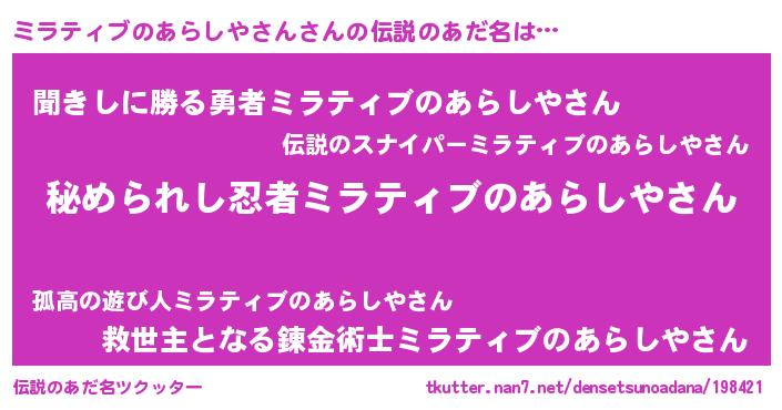 | ヒーロー風カッコイイあだ名 | 『ウルトラミラティブのあらしやさんマン』 |