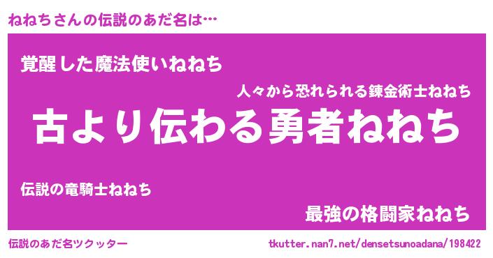 | ヒーロー風カッコイイあだ名 | 『ネオネネチ』『仮面ネネダー』 |